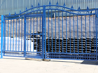 主要做法還是一方管做大門框架,然后使用鐵板作底,把整個門做成實(shí)心的,然后在鐵板上,框架里使用鐵藝配件拼接鑲嵌。這種實(shí)心門的性能就傾向于實(shí)用性,安全性,但是材料使用量比較多,在美觀方面也不是很突出,比較適合做小尺寸的門,比如私家小院門。